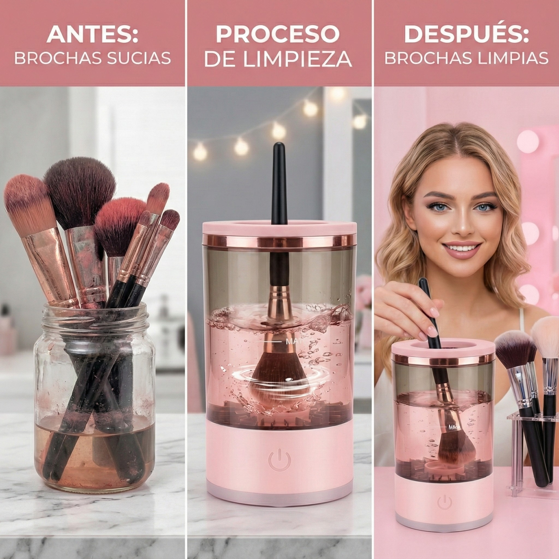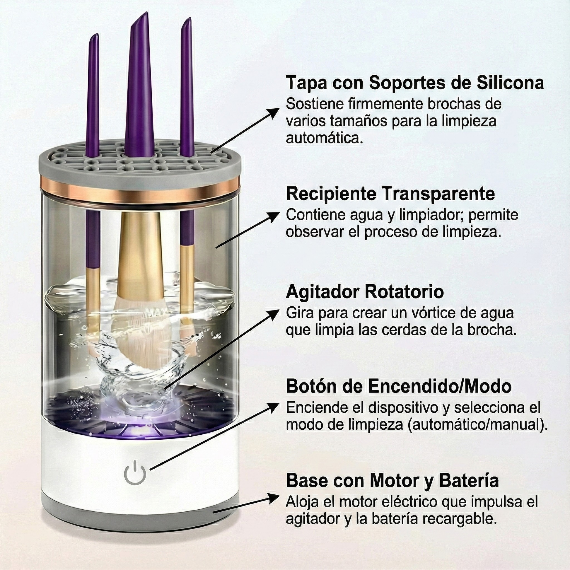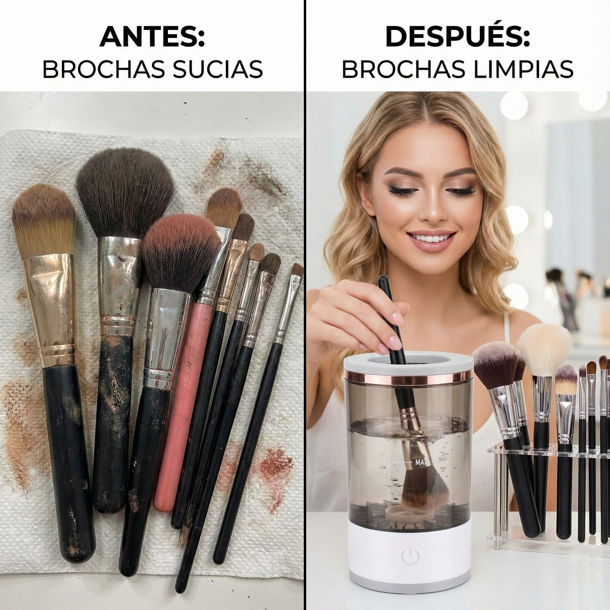 - ⏱️ Ahorra tiempo en tu rutina diaria con brochas limpias y secas en solo unos instantes, sin limpieza manual tediosa.